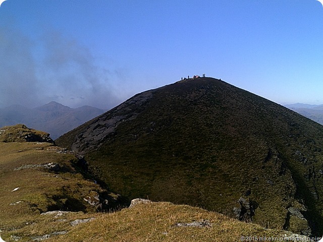 It was quite fab. The sun shone. The path was busy (I don’t mind busy hills by the way), the views were superb and the was No Bracken. The “hill-path” climbs relatively easily – just a bit of a plod, but with improving views, and gets interesting at the top, with three steep cones. There were a couple of dozen people on the top and one or two coming up from the Ptarmigan ridge – panting and sweating heavily and looking quite knackered, it has to be said.
